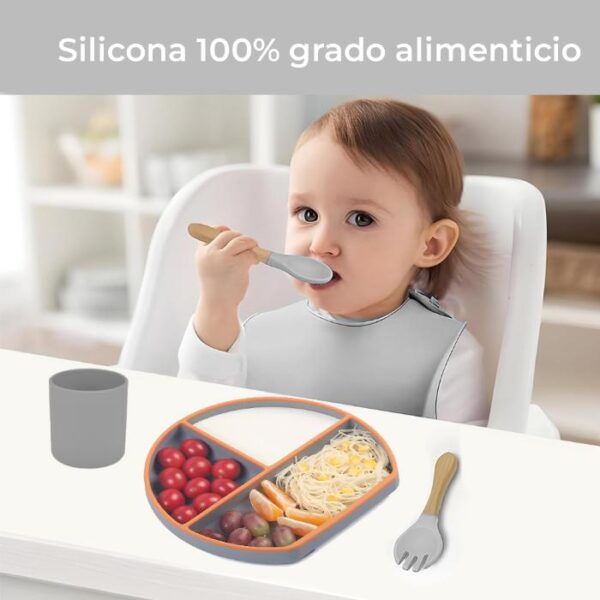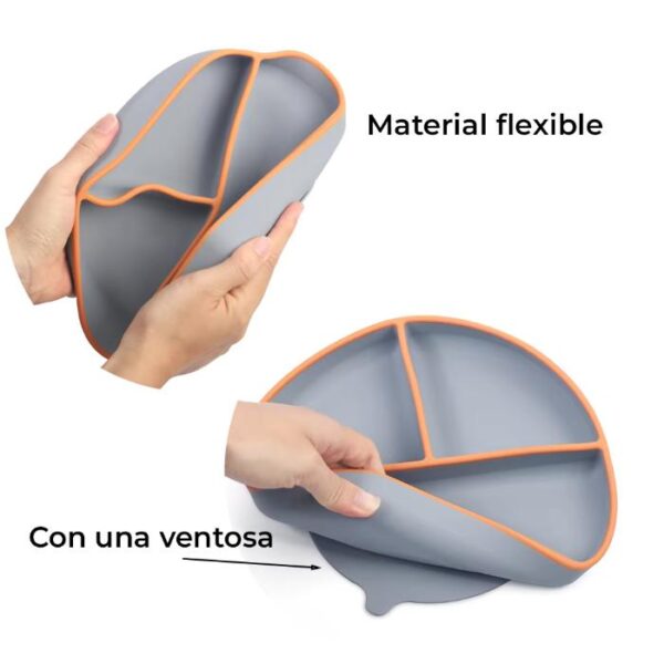 Plato de silicona de grado alimenticio con succión no contienen rellenos ni materiales nocivos que puedan filtrarse en la comida de tu hijo.